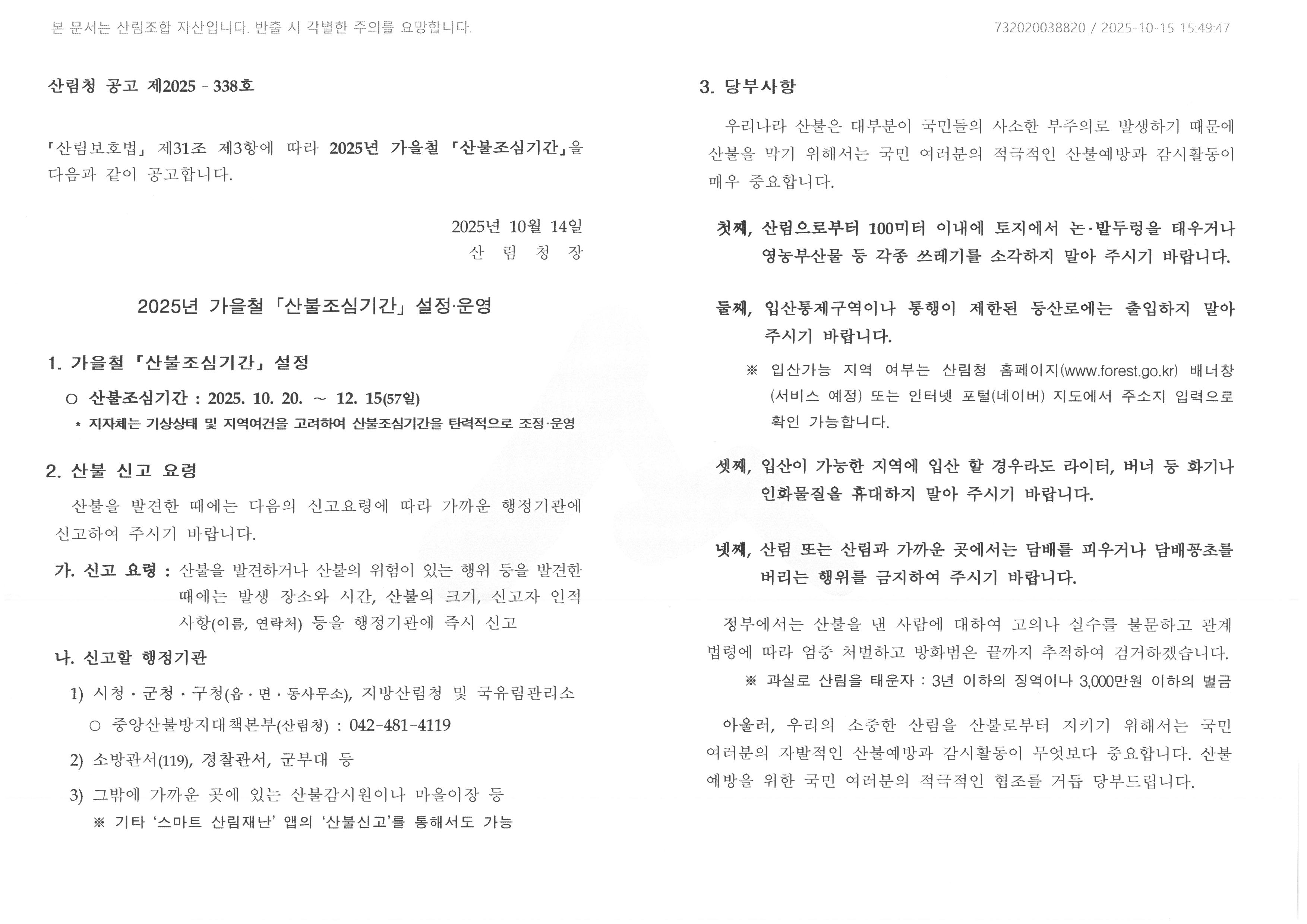 2025년 가을철 [산불조심기간] 설정·운영