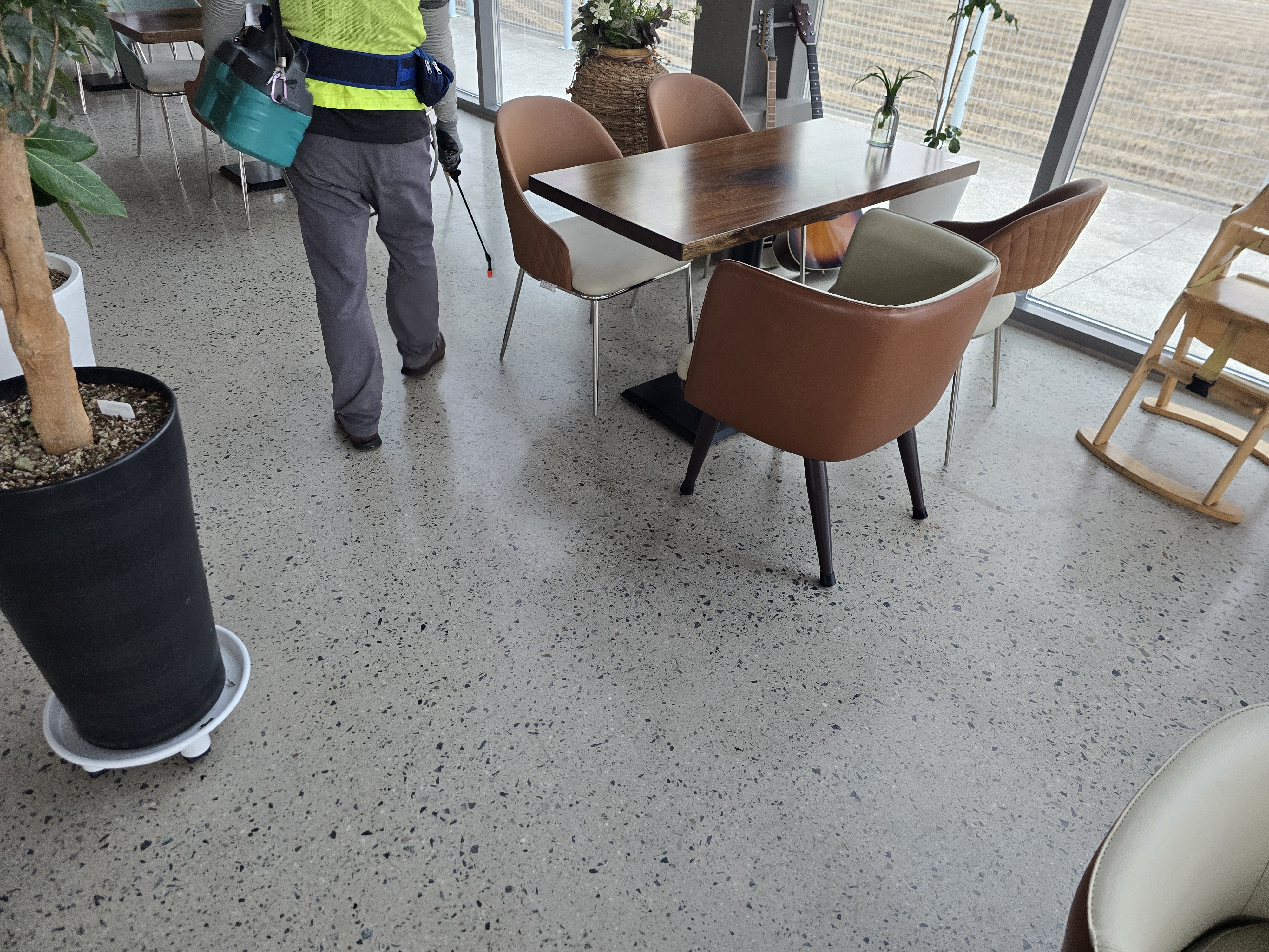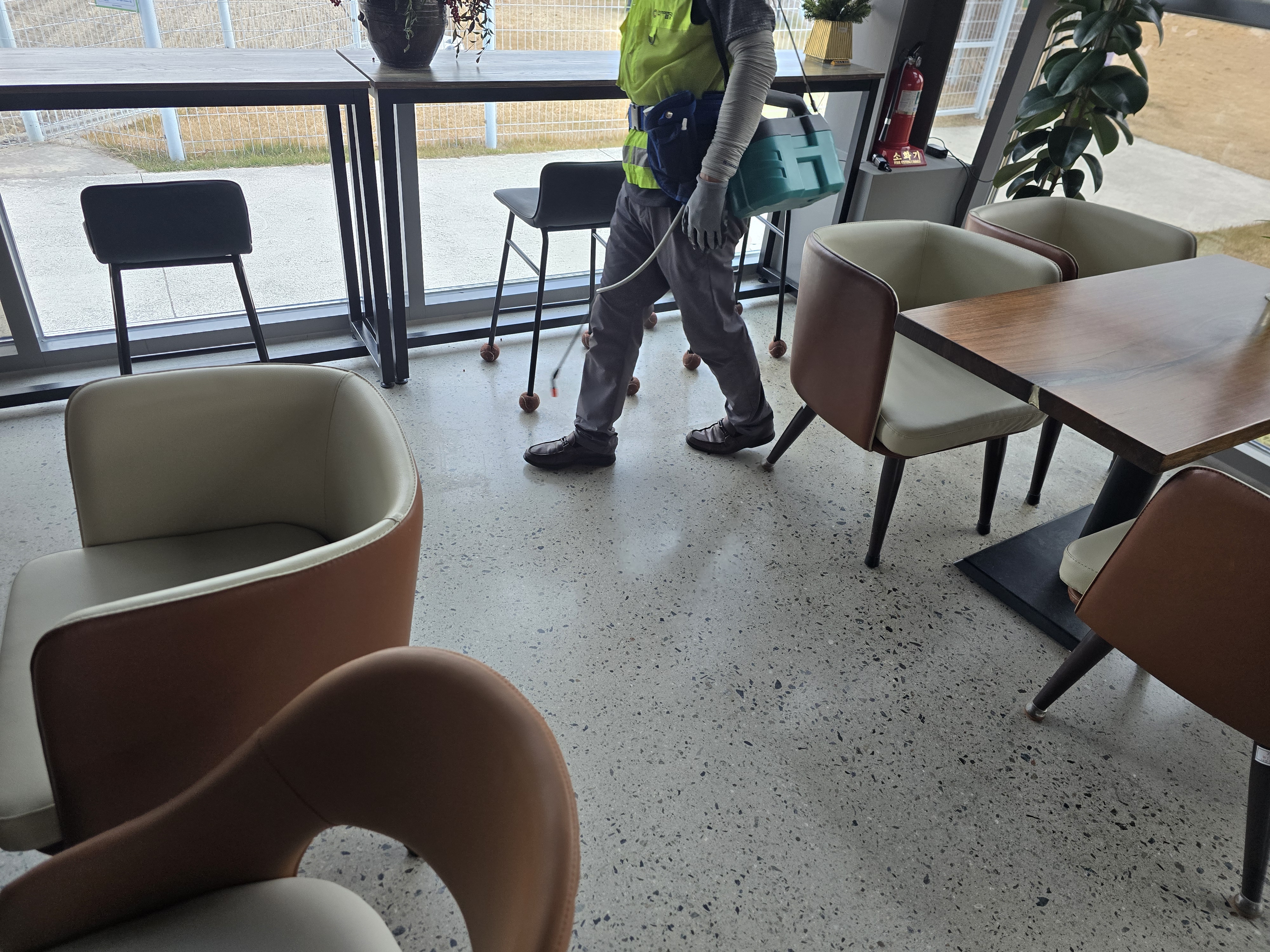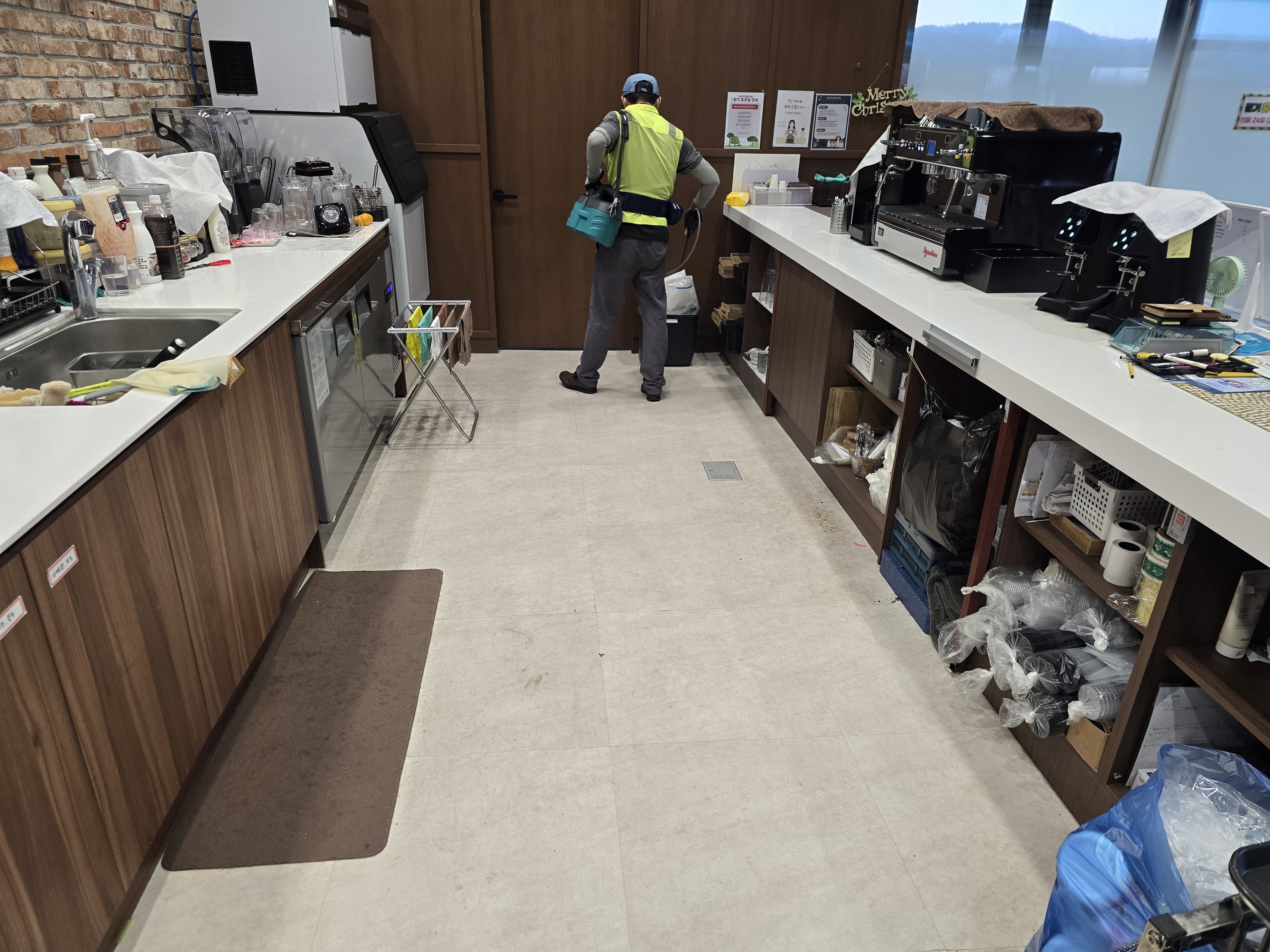 ※ 임산물유통센터 내.외부 및 숲 카페의 보건 환경 위생관리에 철저를 기하기 위하여 월 1회 정기 방역소독을 실시 하는 모습 입니다.