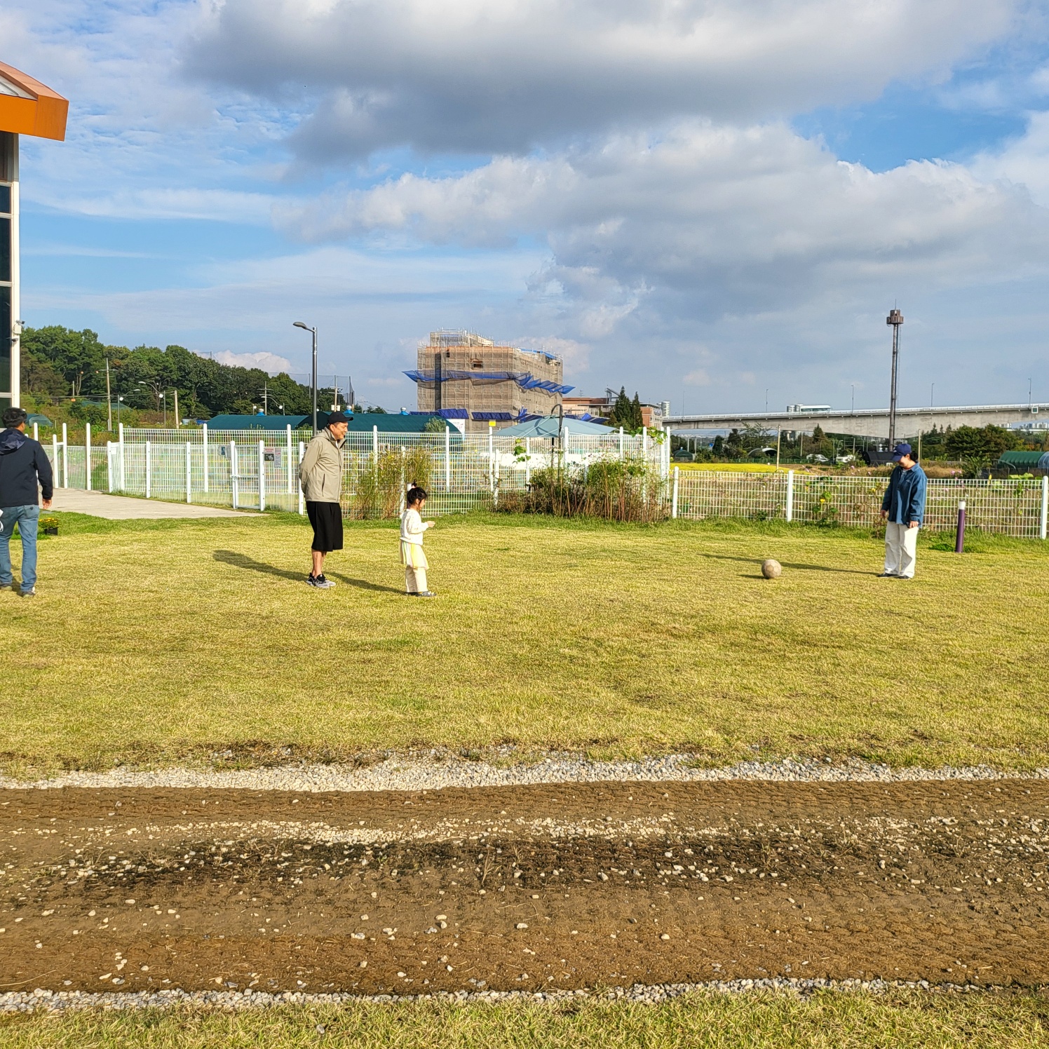 가을 잔디밭 공 하나에 담긴 단순한 즐거움 ~